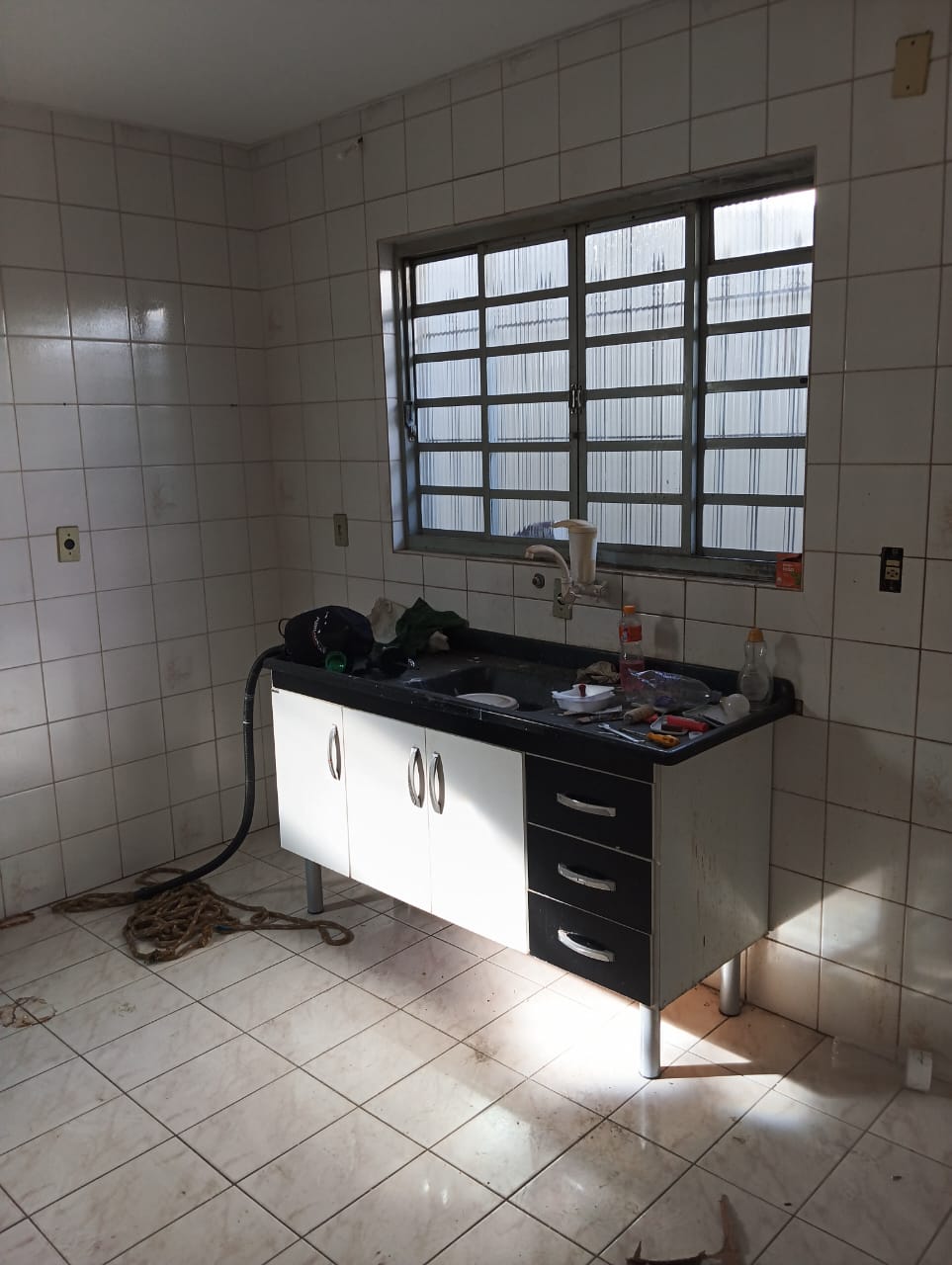 Nos fundos tem uma casa de quarto, cozinha e banheiro, tem também uma kitnet em cima.